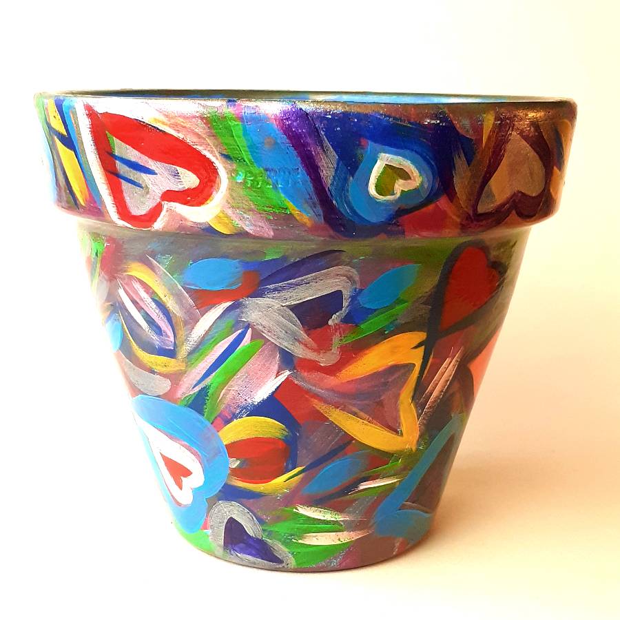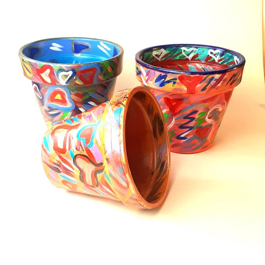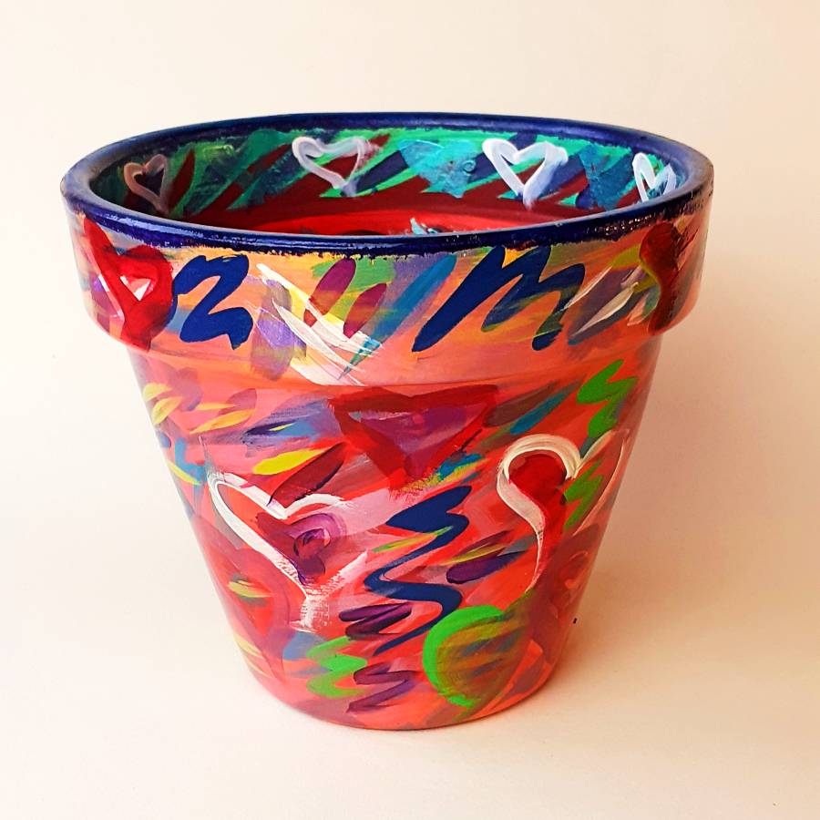 Browse online for a selection of hand painted terracotta pots. The original Love range remains popular with a selection of many colours.
