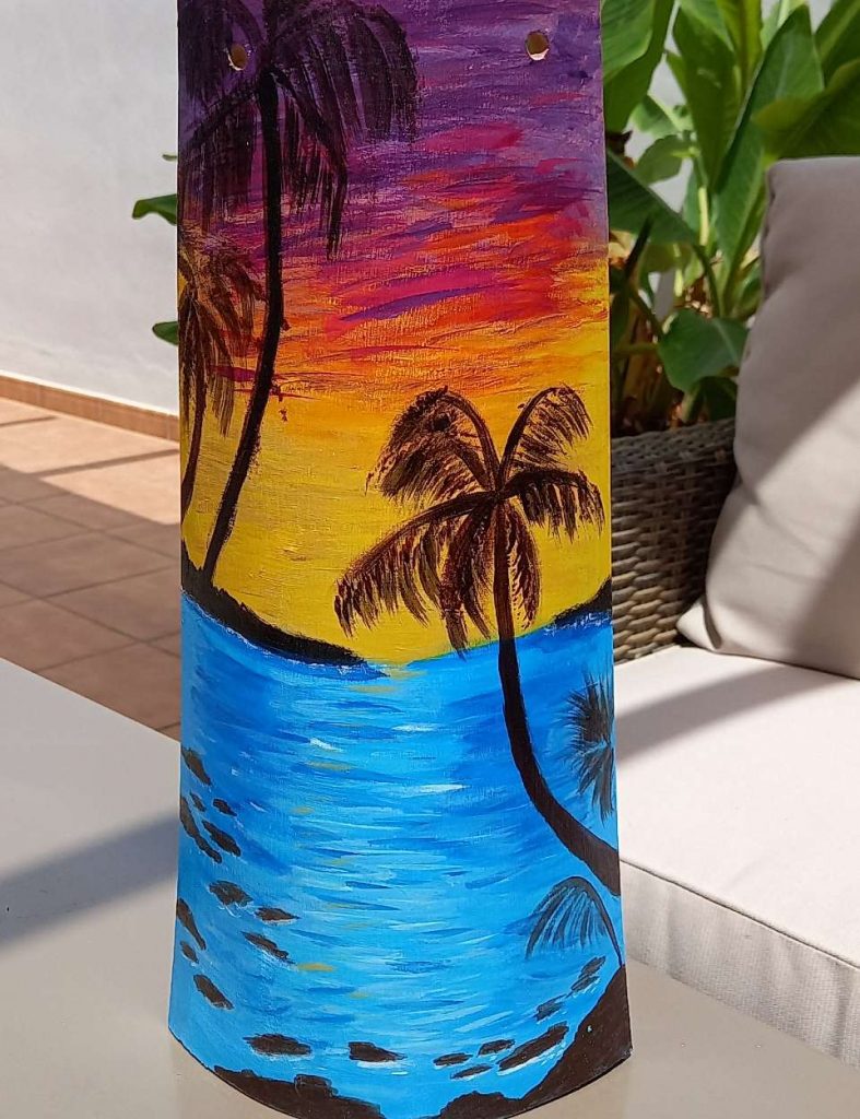 I first started painting in Spain during the lockdown and all I had to paint on were some old roof tiles. It started as something to do and when the results were pretty good it turned from a hobby to a business. Living outside for most of the year it is fabulous to have these vibrant tiles brighten up outdoor spaces. Remember home owners that do not live there permanently don’t have the luxury of colourful gardens.